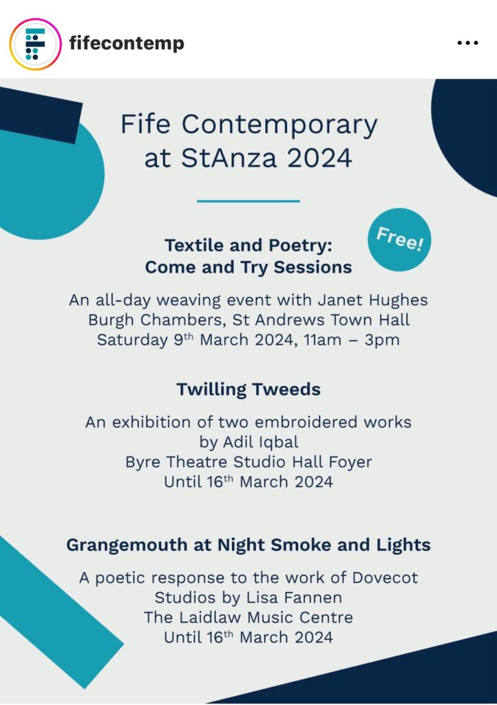 Free weaving workshop at St Andrews Museum for Fife Contemporary part of StAnz poetry festival 21st Feb
